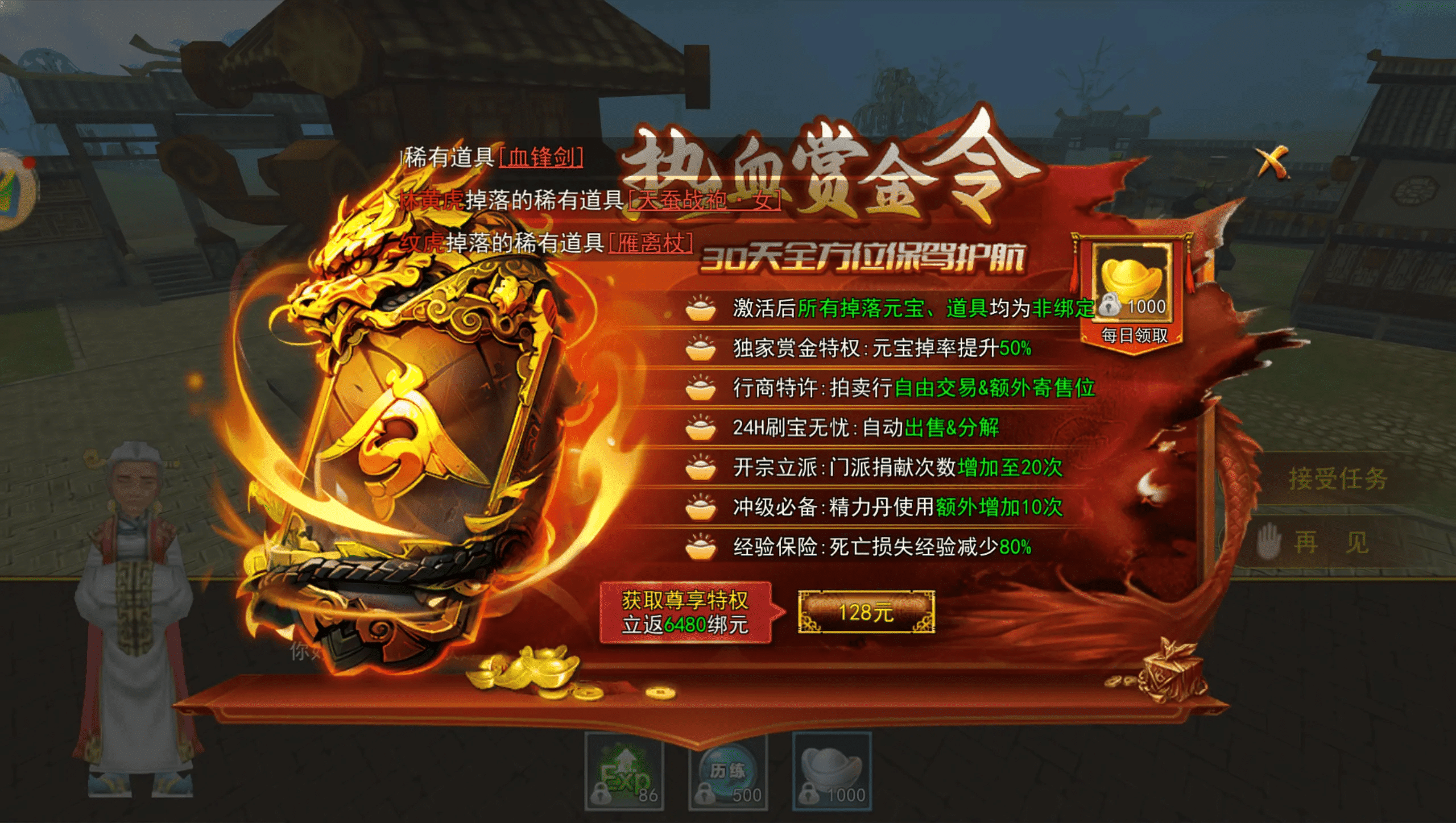想要提升打金效率,也有灵活的特权选择,而非强制氪金。赏金令128元/月,能解锁自由交易、元宝掉率提升50%,还有每日1000绑元,是搬砖党必选,没有这个特权甚至无法变现;侠名68元/月,主打便捷性,远程强化、跨地图传送、自动拾取扩展,帮多开党节省大量跑图时间;双特权组合176元/月,能享受全部权益,还能额外领绑元和强化石,长期搬砖性价比最高。测算下来,初期小额投资,3-4天就能回本,后续纯赚,比其他手游“氪金无底洞”实在太多。