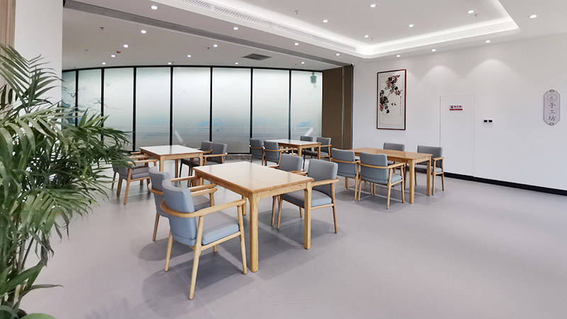 ,养老服务被升华为一种科学的艺术。中心构建了涵盖医疗、护理、餐饮、居住及服务的“五位一体”新中式服务体系。针对认知障碍长者,社区独创了“养老益智社区”模式:通过色彩感知训练、怀旧影像放映、涂鸦墙创作以及维度空间遐想等非药物干预手段,配合环形走廊设计防止走失,科学评估失智程度分期,建立生活风险干预措施,有效延缓认知衰退。对于术后康复和失能长者,专业的康复医疗室与多感官活动室提供了从身体机能恢复到心理慰藉的全方位支持。