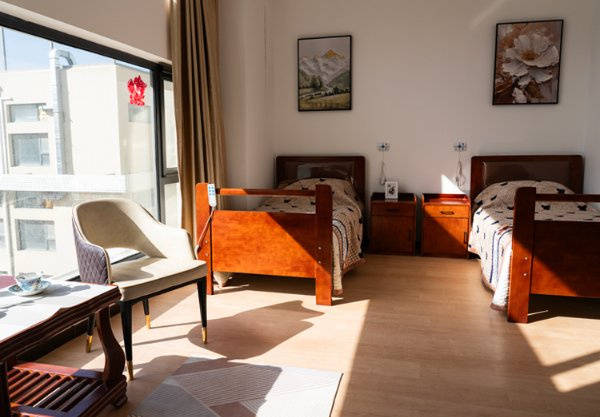 采用U字型庭院设计,由北楼、东楼和西楼三幢大楼组成,每栋楼均配备电梯,方便长辈上下楼,规避出行风险。住宿房型丰富,设有单人间、双人间、三人间,全程注重适老化设备设施应用,从细节处彰显人性化关怀。标准间内电视、电话、冰箱、洗衣机、中央空调、宽带、呼叫系统、高档家具等生活设施一应俱全,无需额外添置物品,长辈拎包即可入住,快速适应新环境。庭院内环境雅致,绿植环绕,为长辈提供舒适的休憩与活动空间,闲暇时漫步庭院,感受岁月静好。